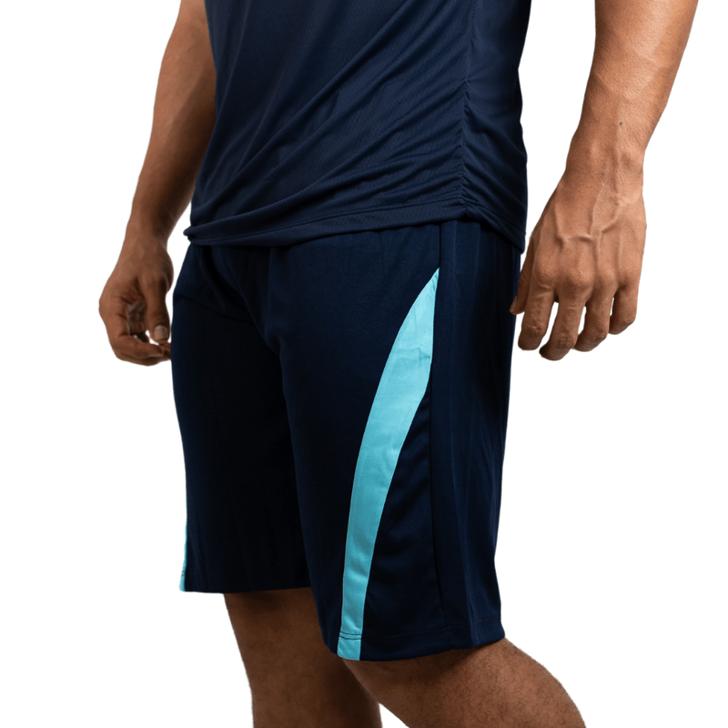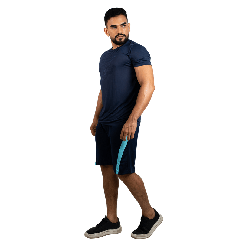 A tecnologia Dry Fit assegura alta respirabilidade e secagem rápida, mantendo o corpo seco e fresco, essencial para o bem-estar durante o exercício. Visualmente, a bermuda, que atinge aproximadamente a altura do joelho, pode apresentar detalhes como uma faixa vertical em tom de azul mais claro na lateral, conferindo um estilo dinâmico e contemporâneo à peça.