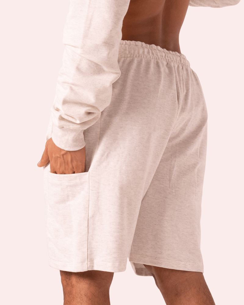 Confeccionada em moletom leve, com uma composição de 99% algodão e 1% poliéster, a bermuda masculina algodão poliéster proporciona maciez excepcional e total liberdade de movimento. Seu cós com elástico e cadarço permite um ajuste personalizado e seguro. O design funcional inclui bolsos frontais tradicionais e bolsos laterais estilo cargo, ideais para guardar seus pertences. A ausência de bolsos traseiros mantém um visual clean e minimalista, reforçando o design moderno desta bermuda cargo sem bolso traseiro.