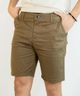Confeccionada em tecido de sarja leve, a bermuda de sarja com elastano possui algodão em sua composição, garantindo um toque macio, excelente respirabilidade e total liberdade de movimentos. Sua modelagem contemporânea oferece um caimento confortável, enquanto os bolsos frontais e traseiros funcionais adicionam praticidade. O design liso e atemporal, com cós que inclui passadores de cinto e fechamento frontal por botão e zíper, reforça seu estilo casual e reto.
