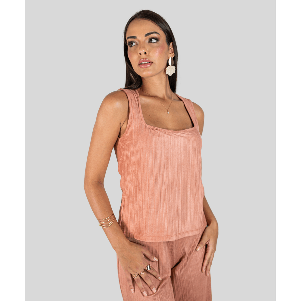 Blusa Feminina Decote Quadrado em Malha Canelada