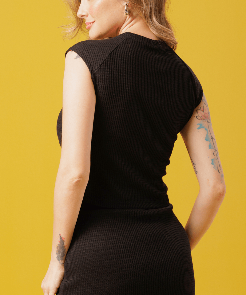 Blusa Feminina TODA NUA Menta Mix Sem Mangas Tricot Com Aviamento
