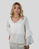 Blusa Social Feminina Refúgio Ana Xis com Mangas Sino/Flare e Decote V