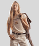 Com uma modelagem confortável e um tecido leve, esta blusa de viscose canelada destaca-se pela sua estampa silkada de uma bota de rodeio com laço. A estampa centralizada de um par de botas de cowboy em tons de marrom e bege, adornadas com um laço rosa claro ou lilás e a frase "Western glory" em letra cursiva acima, celebra o espírito western de forma charmosa e contemporânea. É a blusa de rodeio feminina ideal para compor looks casuais com um toque de identidade, realçando a moda country feminina.