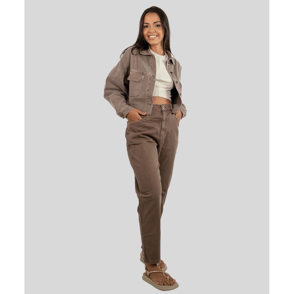 Calça Feminina Modelo Mom Max Denim: Confeccionada em sarja de alta qualidade na cor marrom, esta peça oferece o equilíbrio ideal entre conforto, resistência e leve elasticidade, graças à sua composição de 98% algodão e 2% elastano. Desfrute de um ajuste perfeito ao corpo e total liberdade de movimentos para o seu dia a dia. O forro dos bolsos, elaborado com algodão e poliéster, assegura ainda mais durabilidade e conforto no uso. O design Mom, com cintura alta, modelagem levemente soltinha e pernas afuniladas, é a escolha ideal para criar looks modernos e cheios de estilo, perfeita para composições versáteis, seja com camisas, blusas ou cropped, para ocasiões casuais ou mais arrumadas.