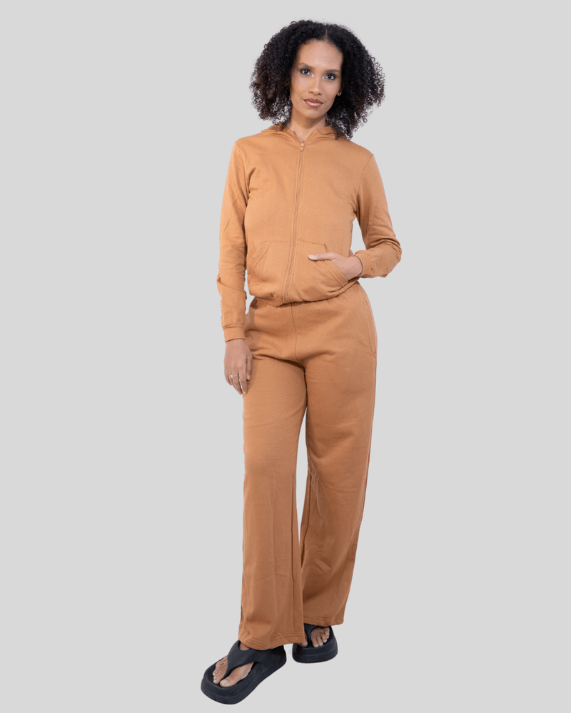 - Corte Wide Leg: pernas largas que trazem um ar moderno e elegante ao conceito de moletom casual.
