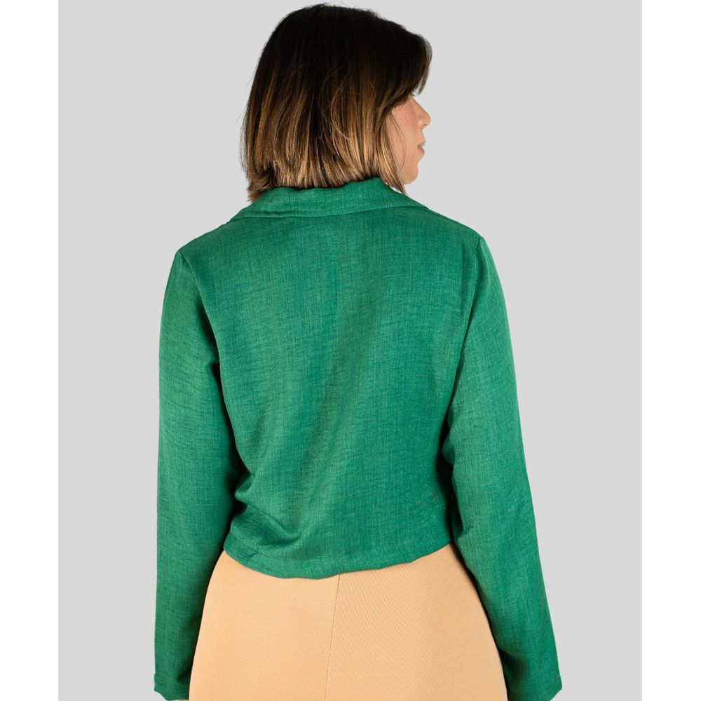 Confeccionada em tecido leve de poliéster, a camisa oferece um caimento fluido e um toque macio à pele, garantindo bem-estar durante todo o uso. Seu design contemporâneo apresenta uma elegante gola estilo polo e fechamento frontal por botões, que adicionam um toque clássico e funcional. Detalhes como os dois bolsos frontais fake na altura do peito e a barra frontal mais curta que a traseira conferem um charme único e um visual despojado, ideal para usar por fora da calça ou com um nó na barra.