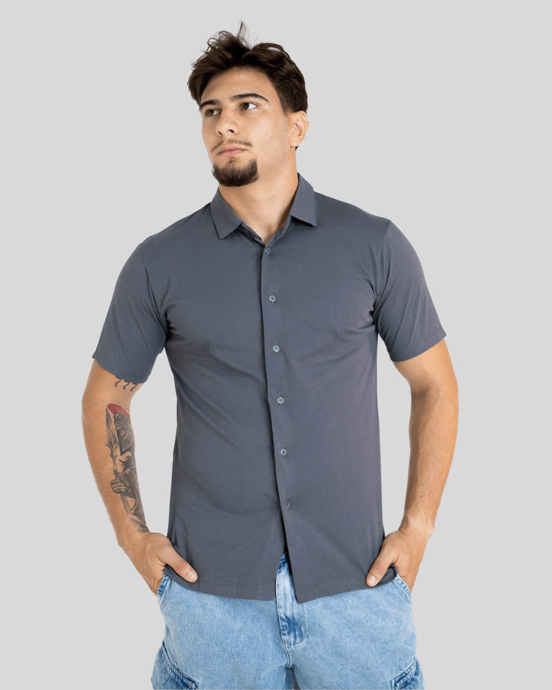 Os destaques da peça incluem seu fechamento frontal por botões, que complementa o design minimalista e uniforme, e a modelagem com manga curta, ideal para dias mais quentes. A camisa de botões masculina Sea Surf é extremamente versátil, combinando perfeitamente com jeans, bermudas ou calças de alfaiataria, adaptando-se ao seu estilo e necessidade. Seu design liso e sem estampas, como visto nas imagens, confere uma aparência uniforme e sofisticada, ideal para quem busca uma camisa masculina básica, mas com toque de elegância.