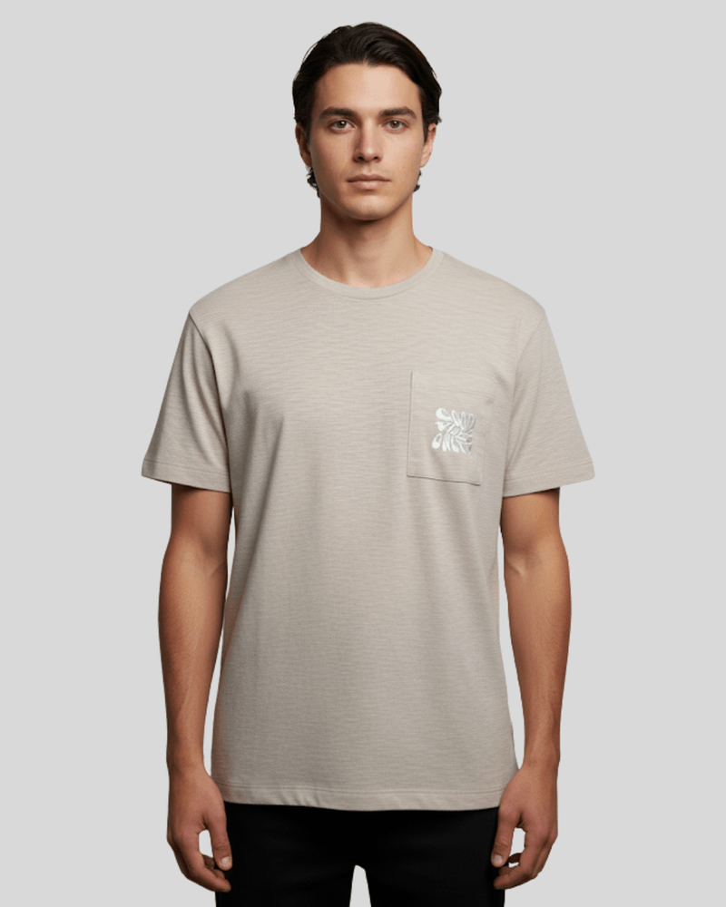 O design diferenciado da camiseta G91 se destaca pelos seus detalhes únicos. Predominantemente na cor bege claro ou areia, com uma textura sutilmente aparente de finas linhas horizontais, a peça conta com um prático bolso no peitoral, adornado com um discreto bordado da frase "good vibes only", adicionando um toque despojado e moderno. A gola redonda e as mangas curtas completam o visual, garantindo um caimento confortável e atual. Ideal para combinar com calças jeans, bermudas ou calças de sarja, essa camiseta é uma peça-chave no guarda-roupa masculino.