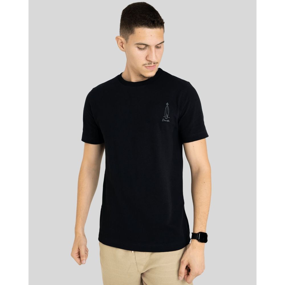 Com gola redonda canelada e mangas curtas, a camiseta mantém um visual limpo e extremamente versátil. A pequena e charmosa estampa de prancha de praia no peitoral adiciona um detalhe sutil e estiloso, tornando-a ideal para compor looks casuais com personalidade e identidade. Seu design liso facilita a combinação com diversas peças do guarda-roupa, sendo perfeita para climas quentes e looks urbanos, oferecendo leveza e estilo para o dia a dia.