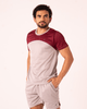 O design da Camiseta Masculina Fitness Duas Cores destaca-se pelo seu recorte colorido na parte superior, que adiciona um toque moderno e esportivo ao visual. A combinação de cores, como o vinho/bordô escuro na parte superior e o cinza claro/prateado na parte inferior, cria um contraste elegante e dinâmico. Este detalhe não só realça o estilo, mas também reflete a busca por uma camiseta com recorte colorido que une estética e funcionalidade para a roupa masculina para academia.