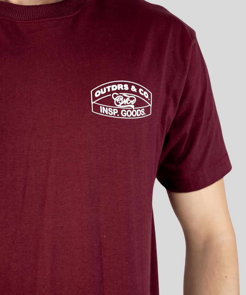 Confeccionada em 100% Algodão, a camiseta proporciona um caimento confortável e toque macio. Ela apresenta uma pequena estampa em alto relevo na parte frontal, que se assemelha a um emblema com as palavras "OUTDRS & CO." e "INSP. GOODS.", adicionando um detalhe exclusivo. Nas costas, uma estampa maior em silk de alta definição garante impacto visual e reforça a identidade urbana da peça, tornando-a um destaque em qualquer look masculino streetwear.