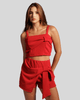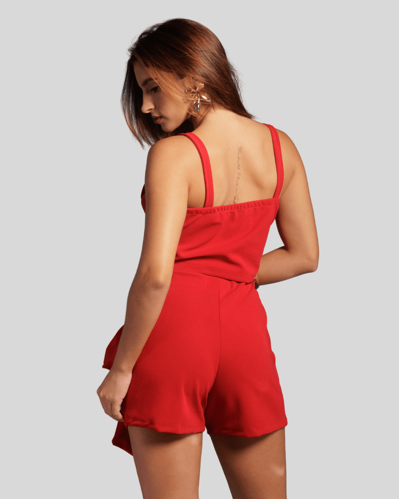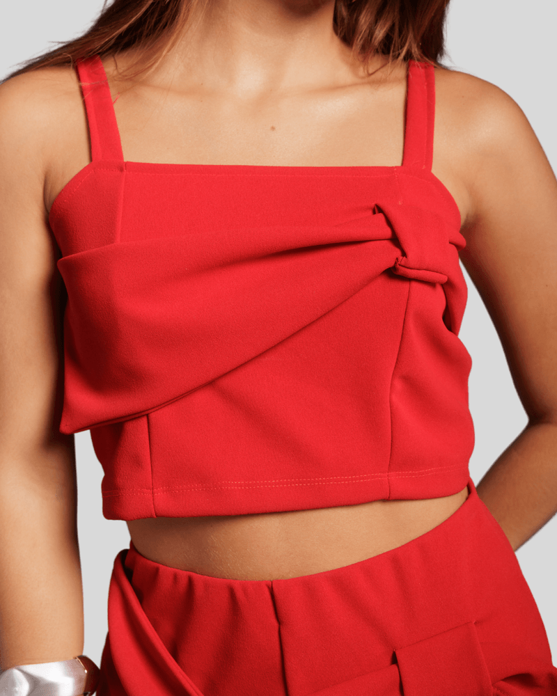 O grande diferencial deste cropped reside no seu detalhe assimétrico, que confere um toque moderno e exclusivo à peça. Inspirado em elementos decorativos frontais, como um tecido torcido ou um nó estrategicamente posicionado na região do busto, ele cria um efeito franzido e um visual drapeado que valoriza a silhueta. Com alças finas e um decote quadrado, a barra reta do top revela sutilmente parte do abdômen, ideal para compor looks despojados ou mais elaborados, adaptando-se a diversas ocasiões.
