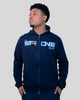 Seu design funcional conta com fechamento frontal por zíper, capuz ajustável e bolsos frontais estilo canguru, ideais para manter as mãos aquecidas ou carregar itens essenciais. O destaque visual fica para a estampa frontal com a palavra