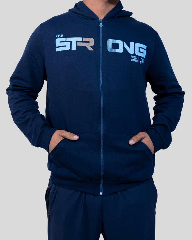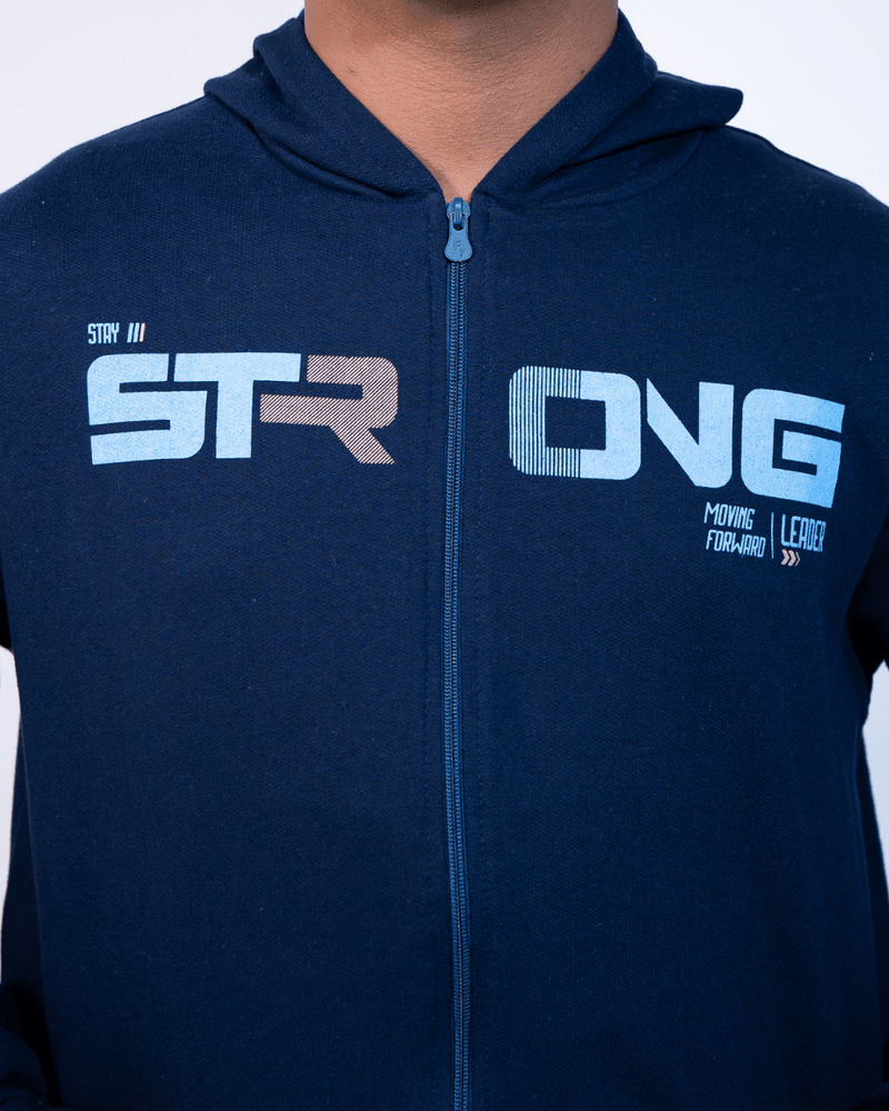 "STRONG" e elementos gráficos modernos, reforçando uma estética urbana e cheia de atitude para o dia a dia ou treinos em dias mais frescos.