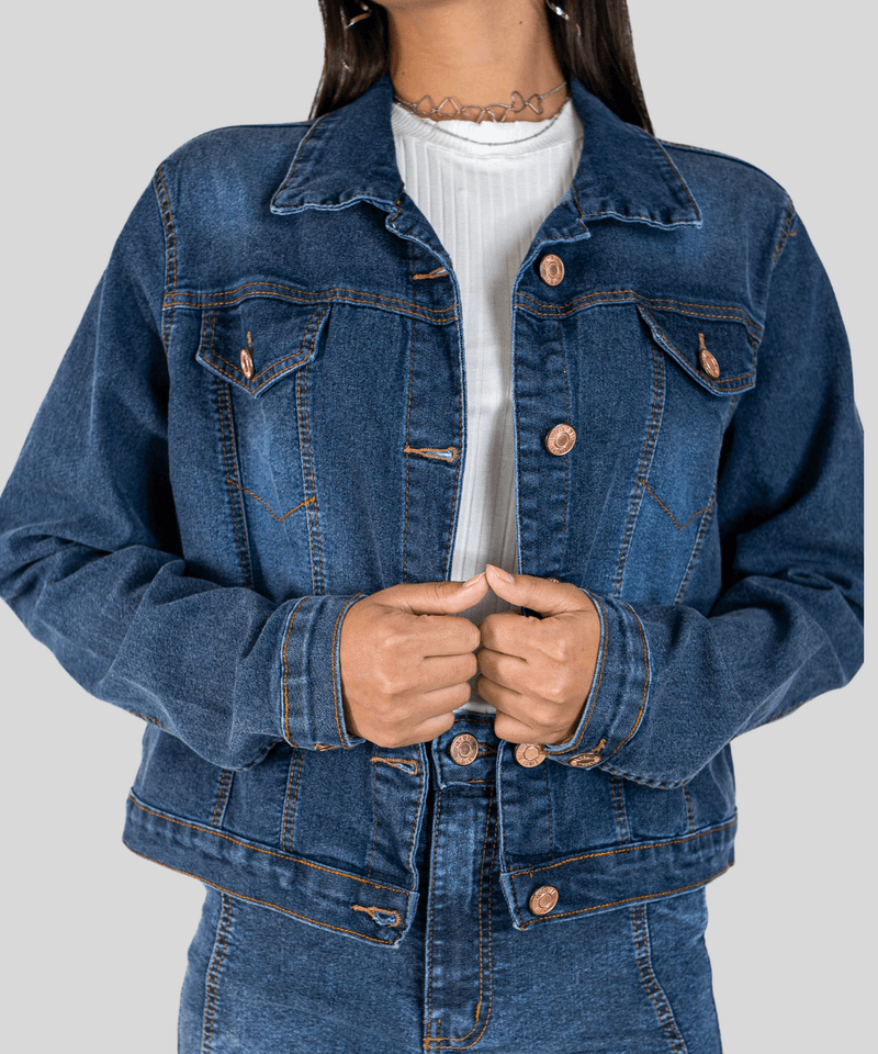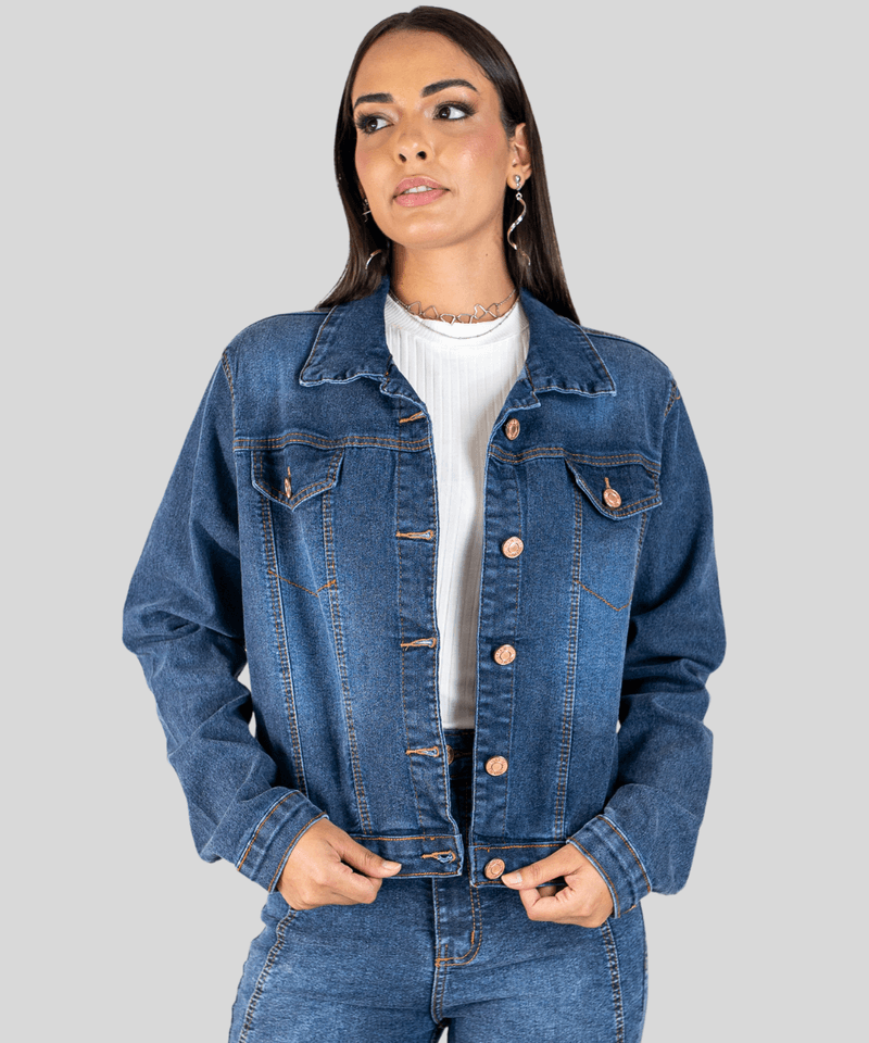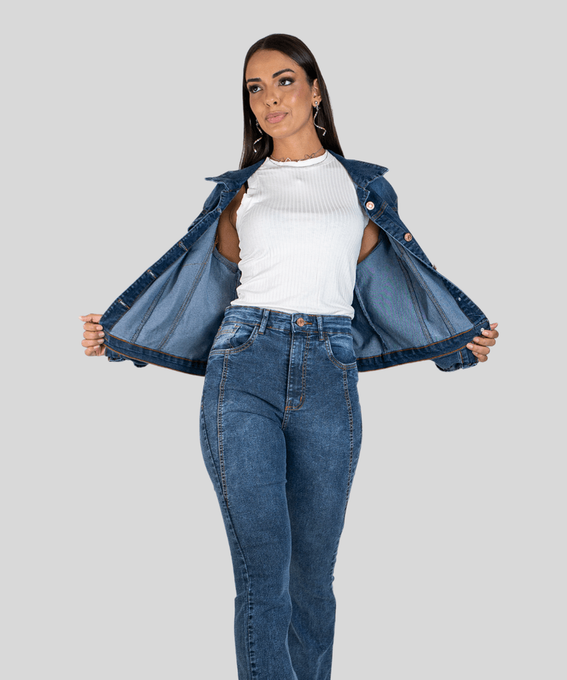 Jaqueta Jeans Feminina – Linda belA peça curinga que não pode faltar no seu guarda-roupa. Confeccionada em jeans com algodão, poliéster e elastano, oferece o equilíbrio perfeito entre conforto, resistência e leve elasticidade. Seu design clássico e versátil permite composições que vão do casual ao urbano, trazendo estilo e praticidade para qualquer ocasião.