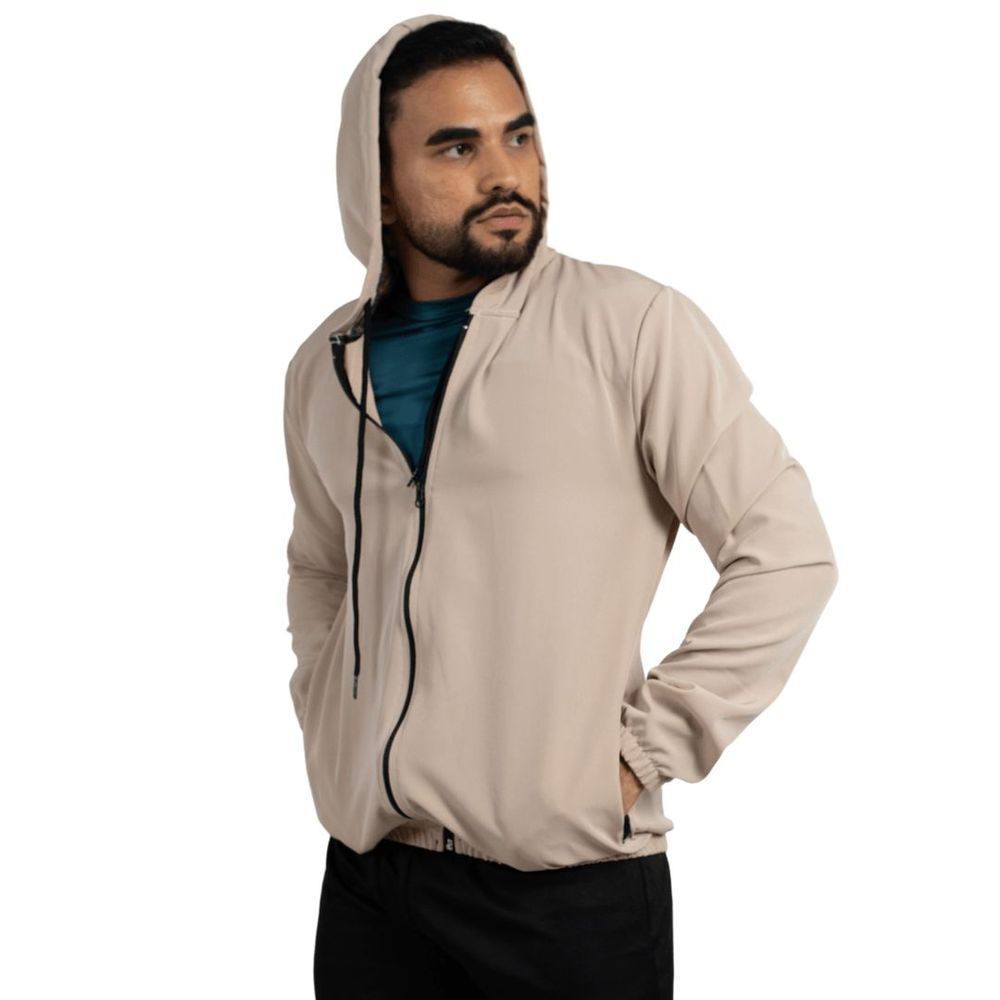 Confeccionada com uma composição de 95% Poliéster e 5% Elastano no corpo, e forro 100% Poliéster, a jaqueta oferece conforto e flexibilidade. Seu design inclui um prático zíper central para fácil abertura e fechamento, além de um bolso lateral com zíper, perfeito para guardar pequenos objetos com segurança. O capuz funcional proporciona proteção adicional contra o vento e a chuva leve, enquanto os elásticos nos pulsos e na barra garantem um ajuste perfeito ao corpo, impedindo a entrada de correntes de ar.