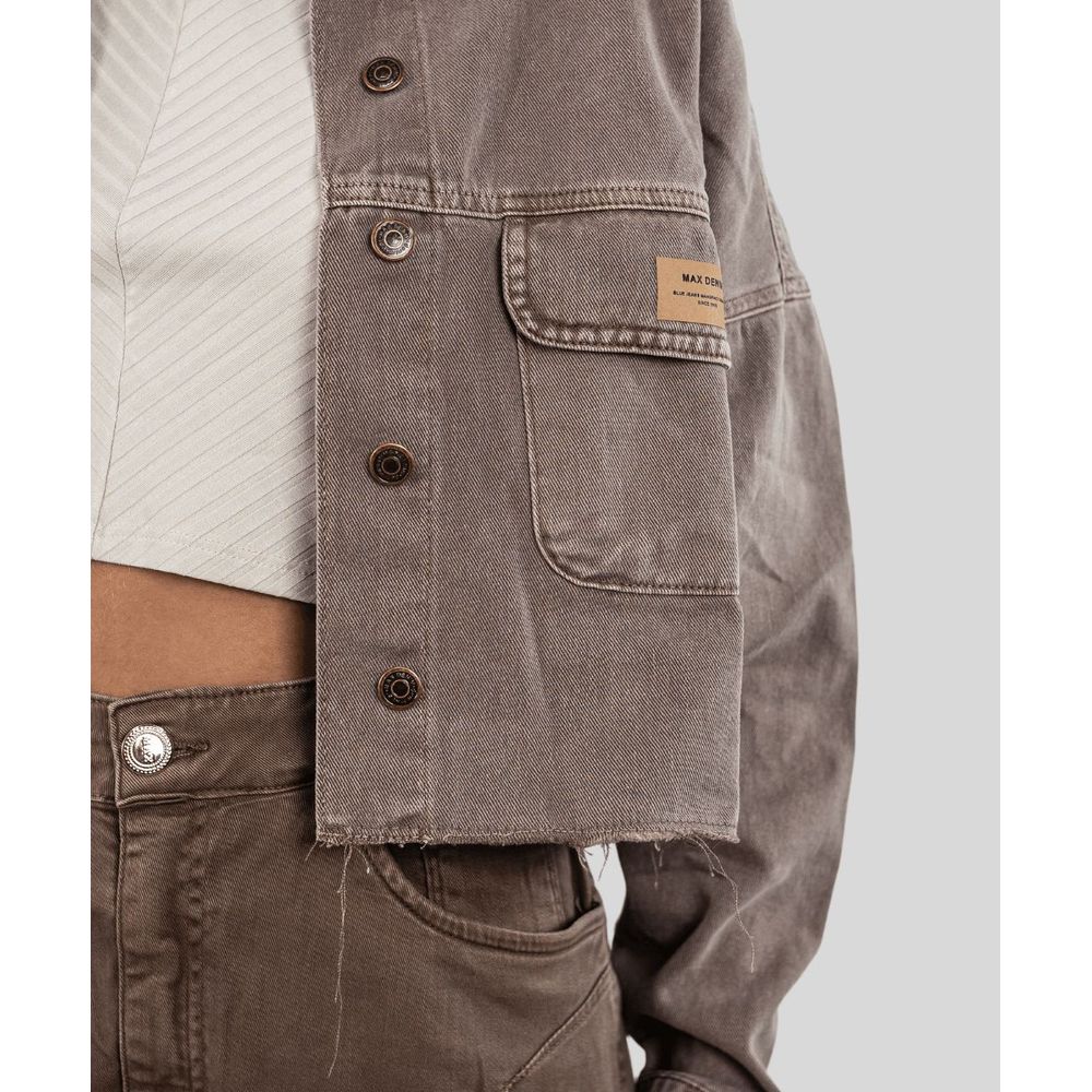 Com uma modelagem cropped que valoriza a silhueta, a jaqueta apresenta mangas longas e um prático fechamento frontal por botões. Seus bolsos frontais funcionais adicionam praticidade, enquanto a etiqueta exclusiva da marca Max Denim confere um toque de autenticidade e estilo ao seu look.