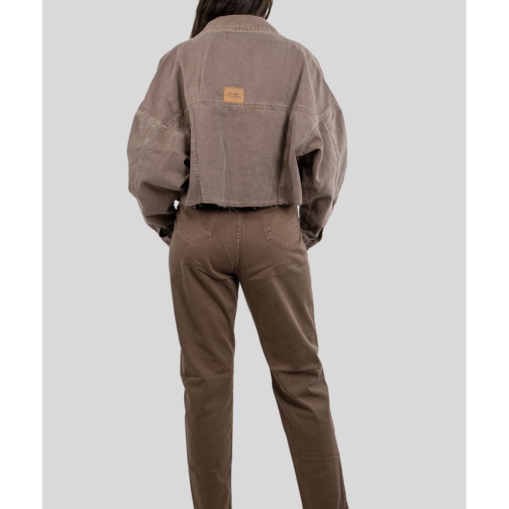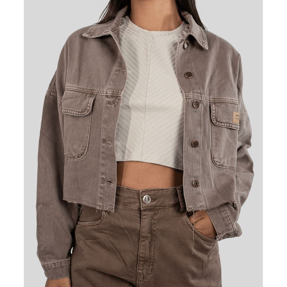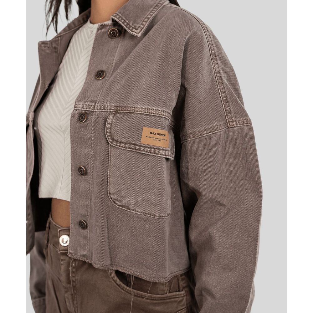Jaqueta Sarja Cropped Max Denim Manga Longa - Marrom Terroso