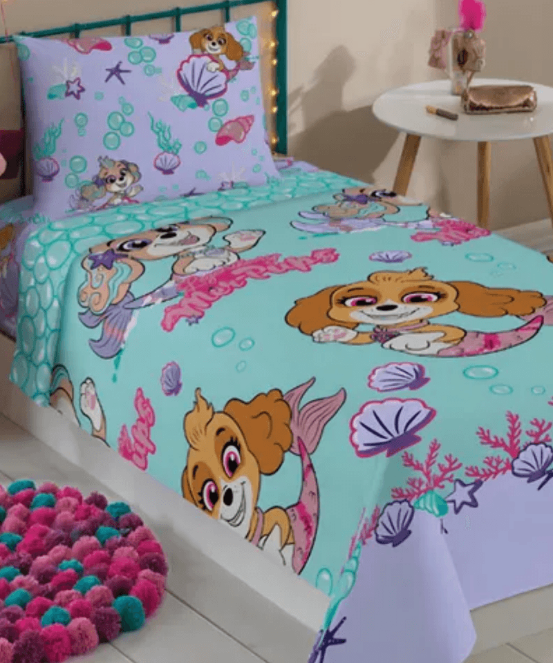 Jogo de Cama Solteiro Infantil Patrulha Canina Skye Sereia Lepper Kids 2 Peças