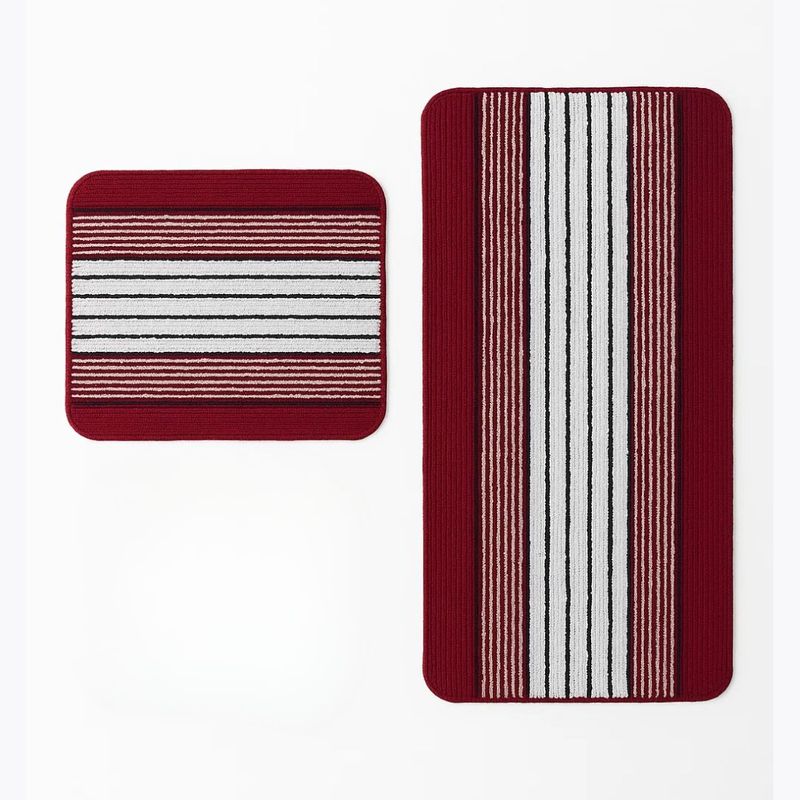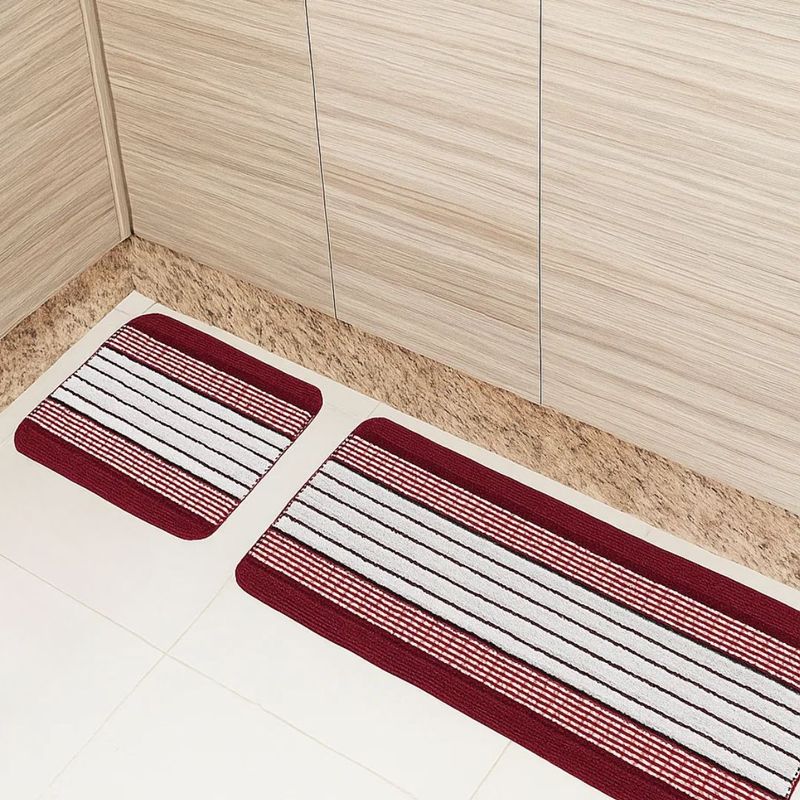 Transforme sua cozinha com o Jogo de Tapetes Ônix Pop da Tapetes Junior, a união ideal entre praticidade, conforto e estilo. Este conjunto é composto por duas peças essenciais: um trilho de 40 cm x 90 cm e um tapete de 40 cm x 50 cm, perfeitos para posicionar em frente ao fogão, pia ou balcão. Com um design moderno e estampa listrada, que pode apresentar tons de vermelho-vinho ou bordô, este jogo de tapetes de cozinha se adapta facilmente a diversos estilos de decoração, adicionando um toque de elegância e funcionalidade ao ambiente.