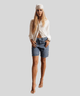O design desta bermuda feminina marmorizada é realçado pela lavagem exclusiva, que confere um acabamento único e contemporâneo, ideal para compor looks casuais e urbanos. Os bolsos tradicionais, tanto na parte frontal quanto traseira, adicionam funcionalidade sem comprometer a estética. Esta bermuda pedal é versátil, combinando facilmente com camisetas, regatas ou até blusas mais elegantes para um contraste fashion, sendo uma excelente opção para o verão 2025.