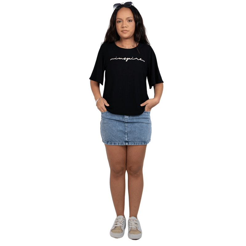 Saia Feminina Jeans Casual Com Bolsos Na Frente e Atrás