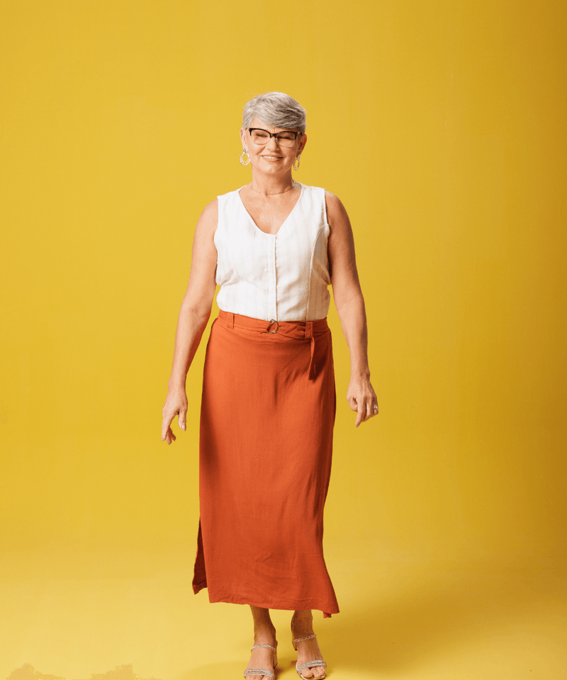 - Comprimento Midi com Fendas: O comprimento abaixo do joelho é sinônimo de elegância. As fendas laterais discretas garantem movimento ao caminhar e um toque sutil de sensualidade.