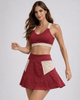 O Top da CR Sports destaca-se pelo seu design anatômico com decote em "V" e alças largas em tom areia, que proporcionam uma distribuição equilibrada do peso e maior segurança durante os movimentos. A peça apresenta uma base em cor vinho com um cós elástico contrastante, que garante que o top permaneça no lugar com firmeza.