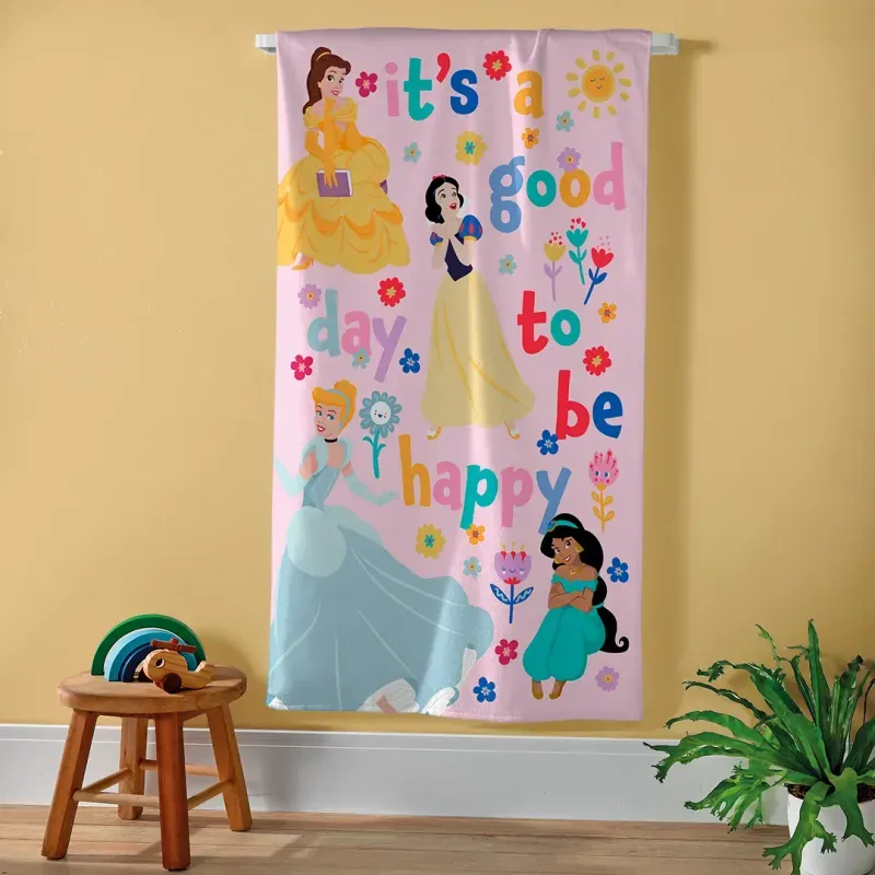 Com um tamanho ideal de 70x115 cm, esta toalha 70x115 é versátil e perfeita para o uso diário, seja em casa após o banho, na piscina ou na praia. Sua estampa alegre e colorida traz algumas das princesas mais queridas da Disney, como Bela, Branca de Neve, Cinderela e Jasmine, acompanhadas da mensagem inspiradora “It’s a good day to be happy”. O design vibrante, com flores e um sol sorridente, cria uma atmosfera otimista, tornando-a uma encantadora toalha princesas disney e uma excelente toalha banho disney. Além de sua beleza, a toalha é altamente funcional, garantindo que a pele das crianças seque rapidamente, evitando desconfortos.