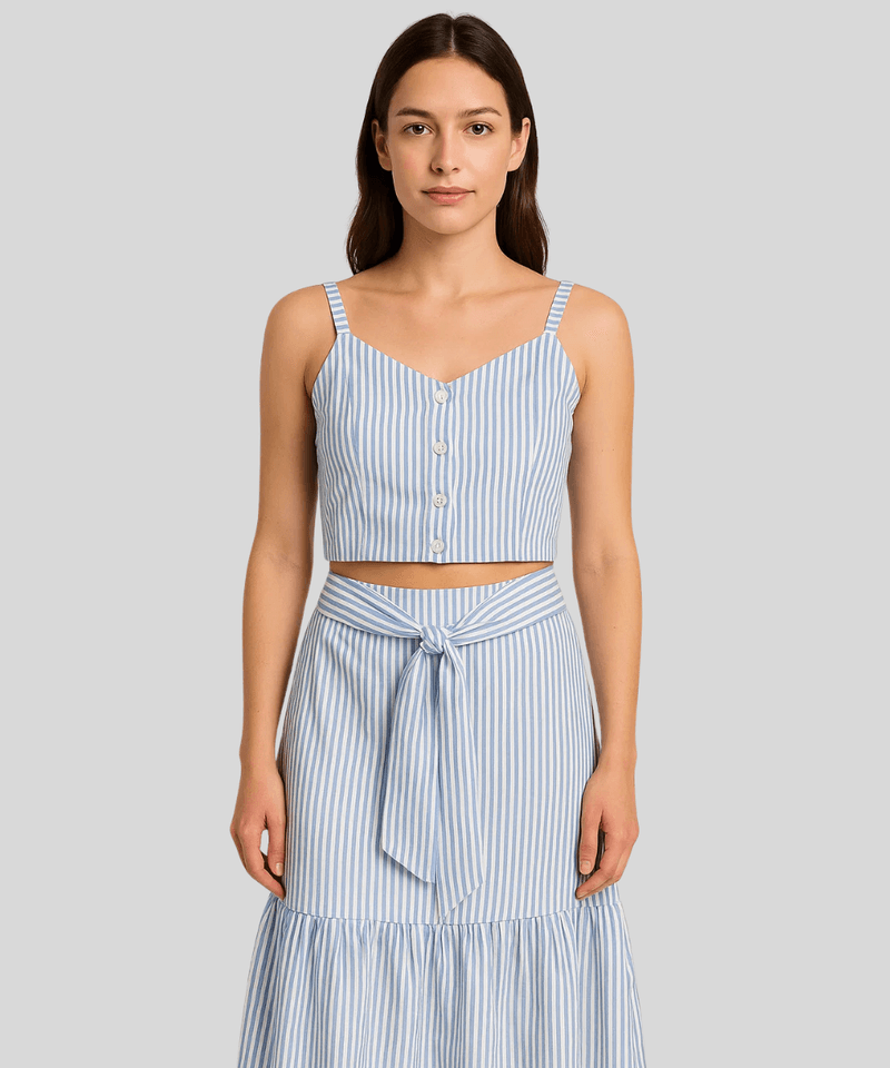 Top de Alcinha e Botões com Estampa Listrado Femalle