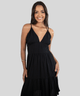 Este vestido monocromático em preto predominante é um verdadeiro coringa no guarda-roupa. Sua modelagem cuidadosamente elaborada assegura um caimento leve e elegante, adaptando-se perfeitamente ao corpo. É a escolha perfeita para mulheres que desejam unir conforto, estilo e um toque de glamour, ideal para quem busca um vestido feminino elegante e um vestido preto versátil. Além disso, o comprimento midi e a ausência de mangas o tornam ideal para diversas estações do ano.