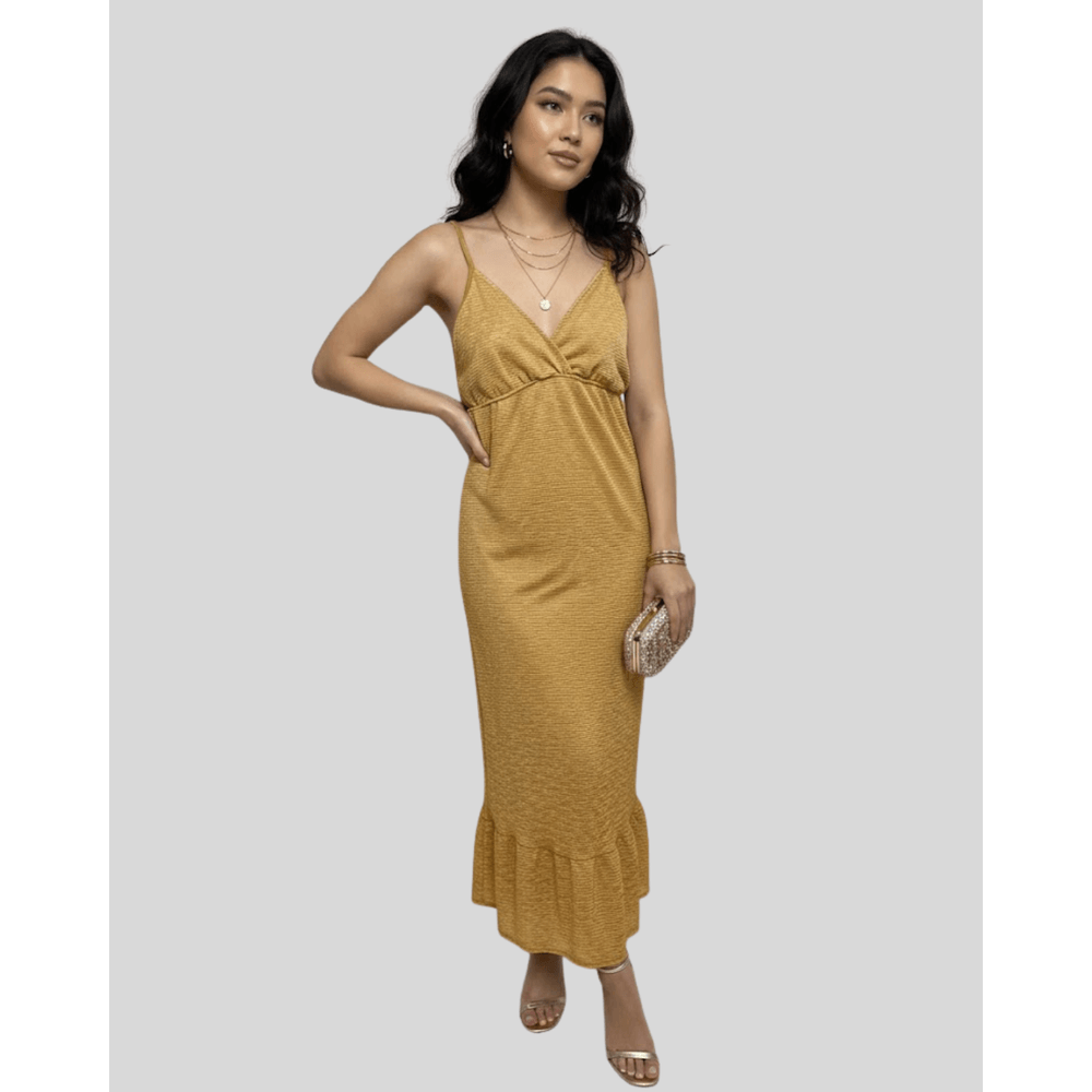 O vestido longo com alcinhas finas é a escolha ideal para quem busca elegância com leveza. Confeccionado em tecido texturizado, ele oferece um toque diferenciado e sofisticado ao visual. Seu design conta com decote delicado, modelagem levemente justa ao corpo e uma abertura sutil na barra, que confere fluidez ao caminhar. Versátil e atemporal, é perfeito para eventos casuais ou ocasiões especiais. Composição em 100% poliéster, garantindo conforto e fácil manutenção.